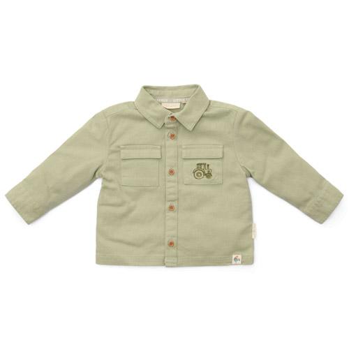 Twee borstzakjes, waarvan één versierd met een klein borduursel, maken de look compleet.