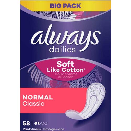 Inlegkruisjes Always Normal classic 0% parfum 58 stuks OP=OP