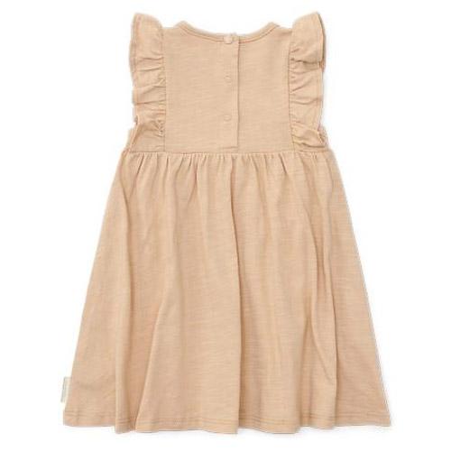 Dit beige jersey jurkje met slubstructuur is gemaakt van zacht biologisch katoen en is heerlijk om te dragen op warme dagen.