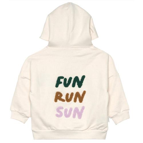 De hoodie is 100% katoen (biologisch) is wasbaar op 40 graden en geschikt voor kinderen van 1 - 6 jaar.