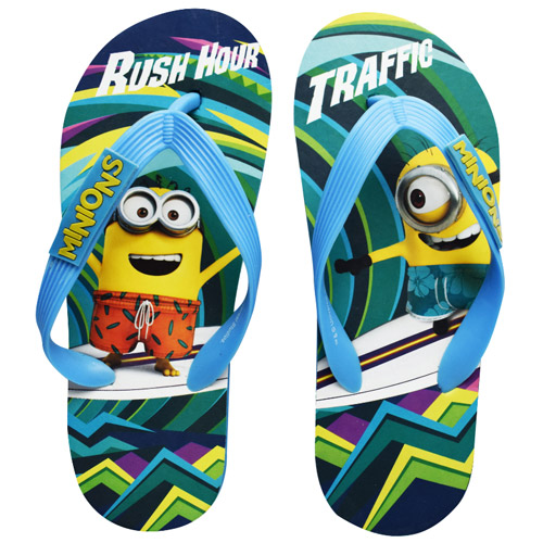 Blauwe teenslippers van de Minions, in blauw, groen, geel en paars.Bob de Minion is afgebeeld op de slippers.Beschikbaar in verschillende maten:34/35, 36/37, 38/39, 40/41.