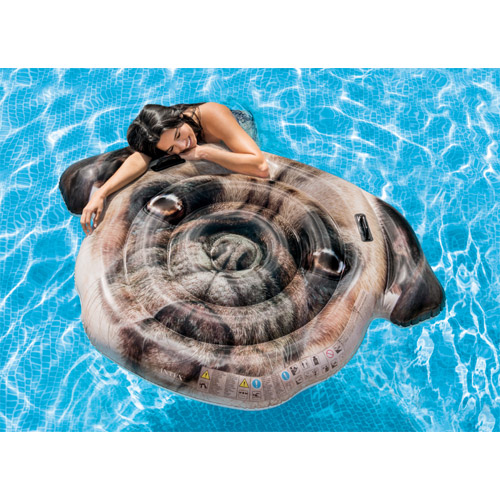 Drijf en geniet van de zon op een mooie zomerdag in het zwembad met het Intex mopshond gezicht eiland.