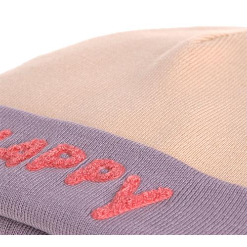 De muts is temperatuurregulerende en krast niet op het gevoelige kinderhoofd.