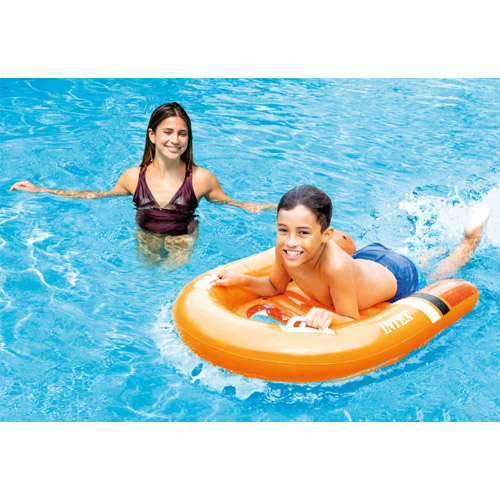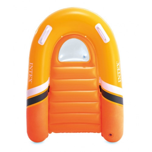 Kinderen zullen zeker golven vangen op dit oranje surfbord met doorkijkraam van Intex.