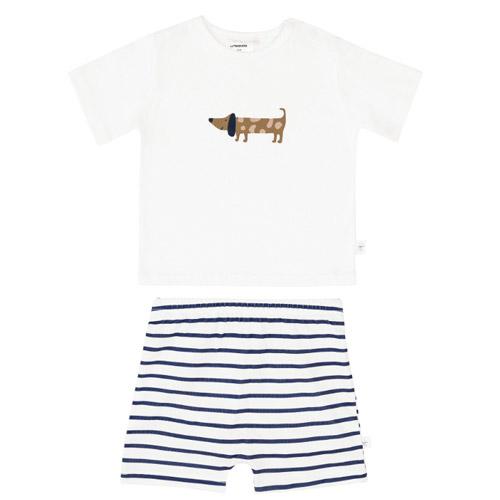 Pyjama Lässig set met korte mouwen Gots Dog wit-donkerblauw OP=OP