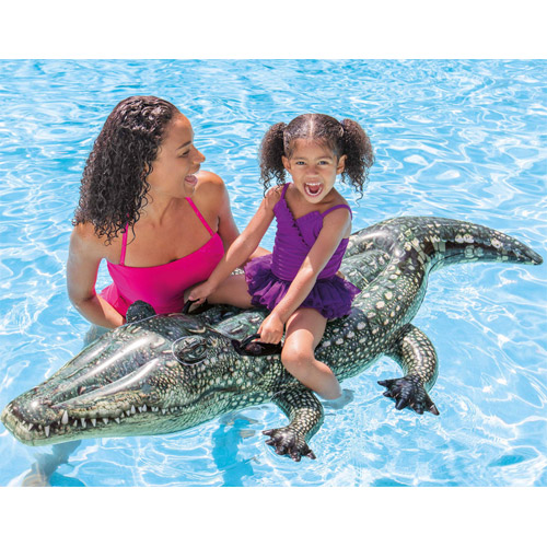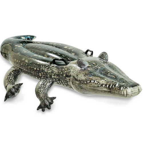 Realistisch krokodil zitje ride-on.Laat uw vrienden schrikken door deze krokodil die er precies als echt uit ziet te gebruiken in uw zwembad.Afmetingen: 170 cm x 86 cm.Leeftijd: 3+.