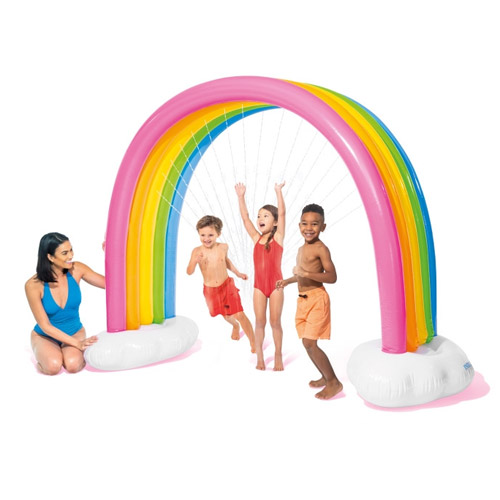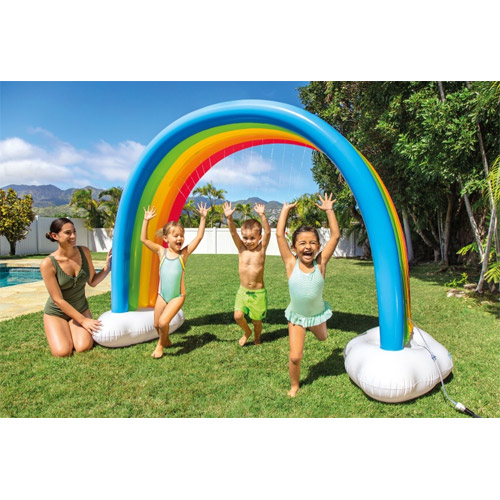 Zorg voor de nodige afkoeling tijdens een warme zomerdag met deze regenboog fontein van Intex.
