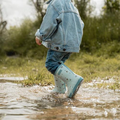 Deze regenlaarsjes zijn gemaakt van rubber met een textiel voering en een uitneembaar voetbed.