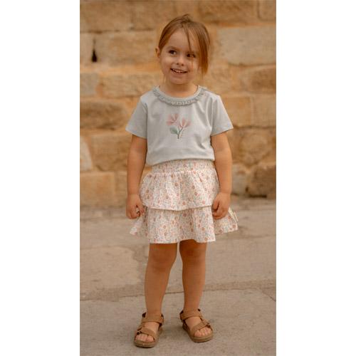 Deze rok, gemaakt van comfortabele crinkle-kwaliteit stof met stretch, is versierd met de vrolijke en kleurrijke Fairy Garden Flower-print.