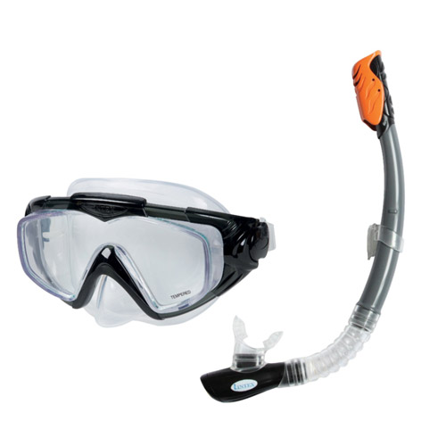 Silicone aqua pro zwemset van Intex is een set voor kinderen, bestaande uit een snorkel en een duikbril, voor nog meer zwemplezier samen met vriendjes op zee.