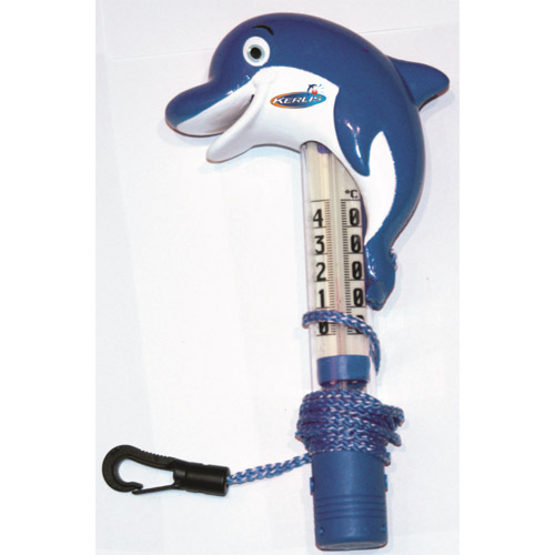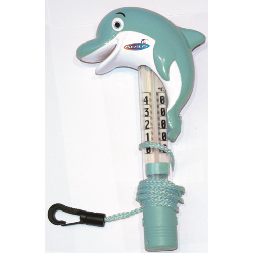 Leuk toebehoren voor in uw zwembad is deze mooie dolfijn met ingebouwde thermometer van Kerlis, mooi om in uw zwembad te laten dobberen.