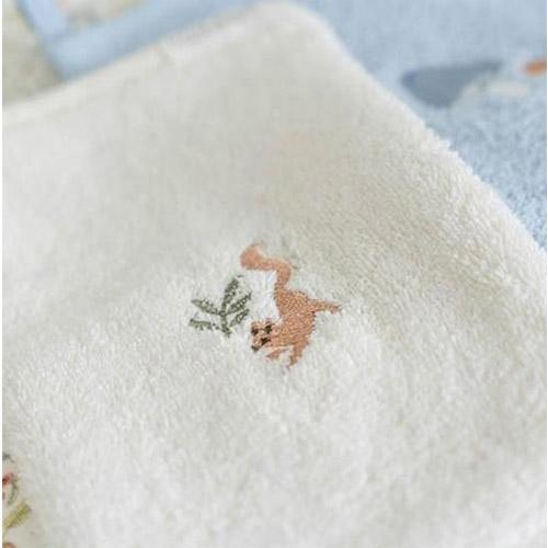 Het witte washandje is geborduurd met een speelse eekhoorn en de blauwe heeft een borduursel van twee kleine paddenstoelen.