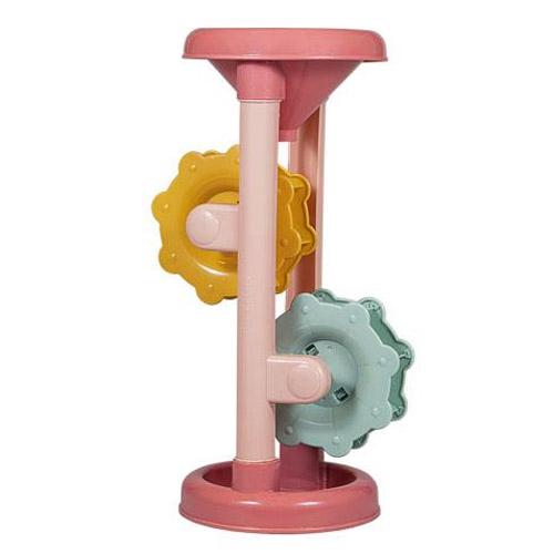 Bovenaan het speelgoed zit een trechter waar water of zand inkomt.