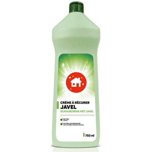 Dit schuurmiddel, gecombineerd met de kracht van javel, reinigt de oppervlakken en geeft ze hun oorspronkelijke glans terug, zonder krassen.
