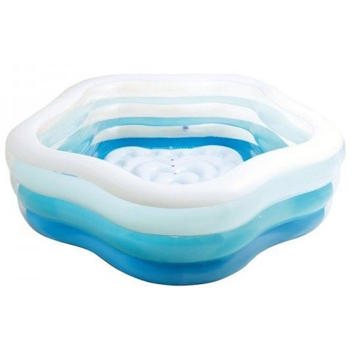 Comfortabel opblaasbaar Intex zwembad met een dikke stevige wand in een leuke vorm en prachtig van kleur, voorzien van een zachte bodem.
