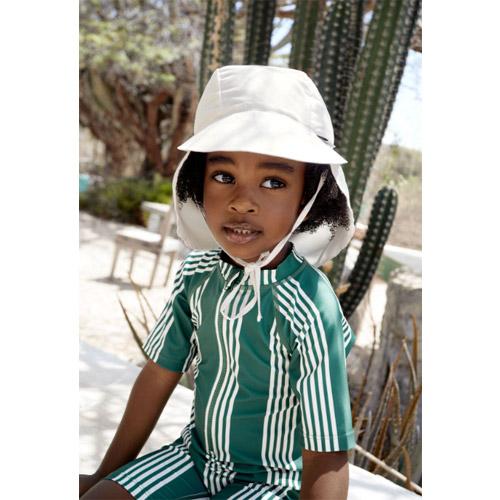 De LÄSSIG zonnehoed kan gedragen worden met bijpassende shirts en broekjes die geweldige kleuren en met vrolijke motieven, zullen de kleintjes zeer goed beschermd zijn in de perfecte strandoutfit.