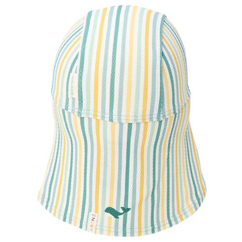 Spetteren in het zwembad of zandkastelen bouwen op het strand, je kleintje blijft beschermd en stijlvol in het vrolijk gekleurde streepjes motief met een klein walvisje aan de achterkant.