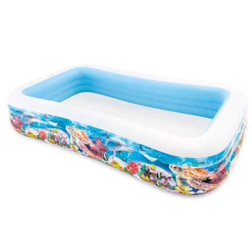 Zwemcenter tropisch rif familie zwembad is één van de vele familie zwembaden van Intex, bij dit zwembad zijn tropische vissen op de zijwanden afgebeeld.