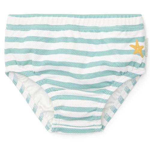 Combineer deze Seashells and Stripes zwemluier, met nautische streepjes en een zeester detail, met het bijpassende zwemshirt voor een stijlvolle tweedelige zwemoutfit.