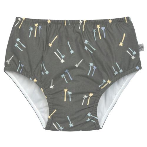 De olijfgroene babyzwemluier met palmprint biedt een mooi en milieuvriendelijk alternatief voor wegwerpluiers.