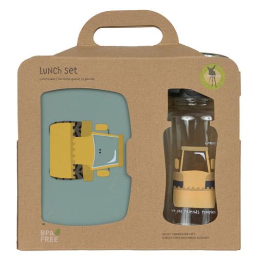 Lunchset Lässig Tiny Drivers graafmachine, lunchbox en drinkfles