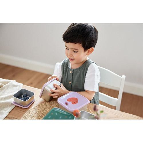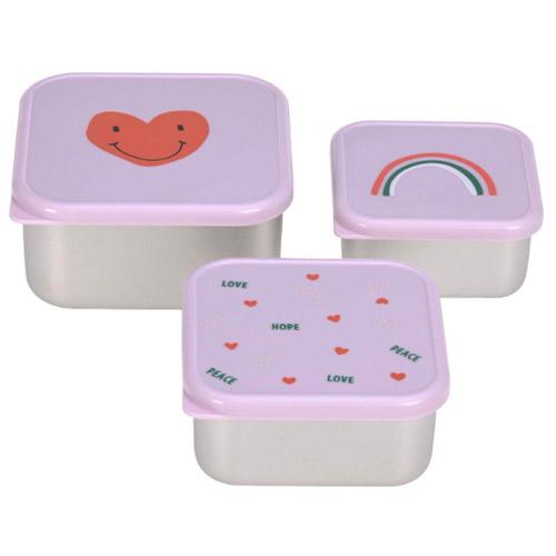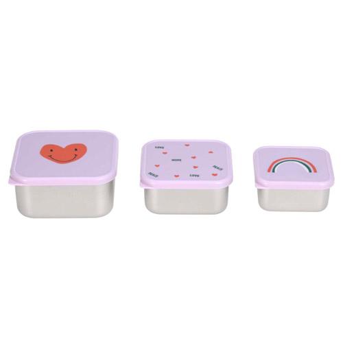Snackboxen RVS Lässig Happy Rascals Heart paars set van 3