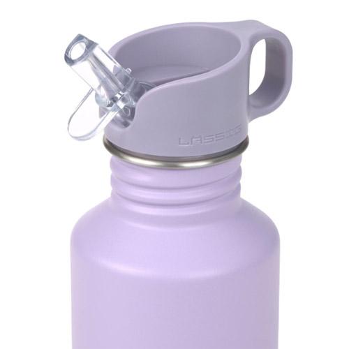 De robuuste LÄSSIG roestvrij stalen fles in lila met praktische sportdop uit de Little Gang collectie.