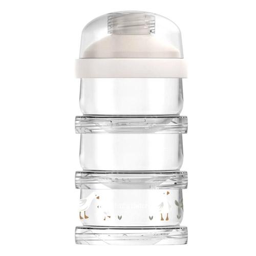 De Mepal Mio melkpoedertoren met het lieve Little Goose printje is de oplossing voor onderweg.