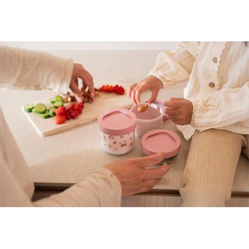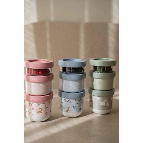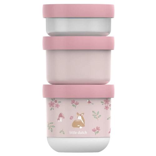 De 3-delige stapelbare snackbox met het dromerige Fairy Garden printje van Little Dutch in een slimme en mooie manier om snacks en kleine spulletjes mee te nemen.