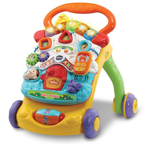 De 2-in-1 baby walker van Vtech zetten kinderen hun eerste stapjes in de wereld van dieren, kleuren, vormen, muziek en nog veel meer.