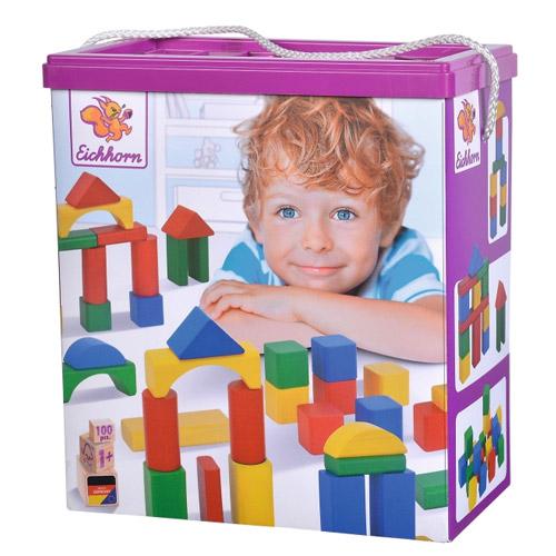 Eichhorn Gekleurde houten blokken in ton 100 stuks