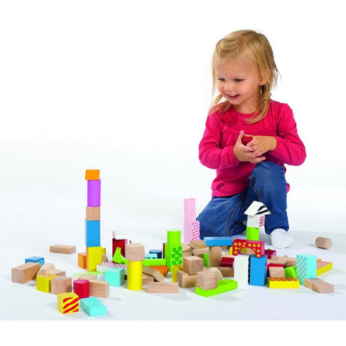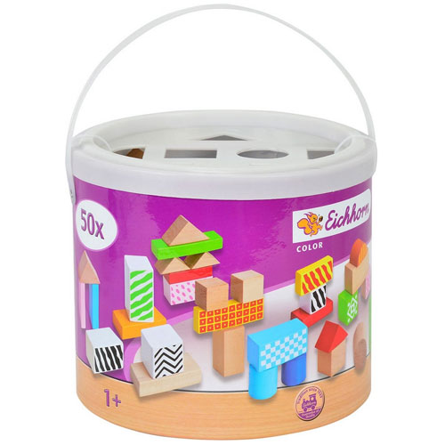 Eichhorn gekleurde houten blokken in ton bestaat uit 50 gekleurde blokken in verschillende kleuren en vormen.