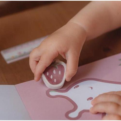De zachte gum wist gemakkelijk fouten uit, terwijl de puntenslijper en het potlood ervoor zorgen dat elke schets of tekst netjes blijft.
