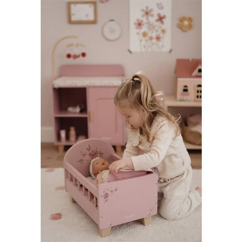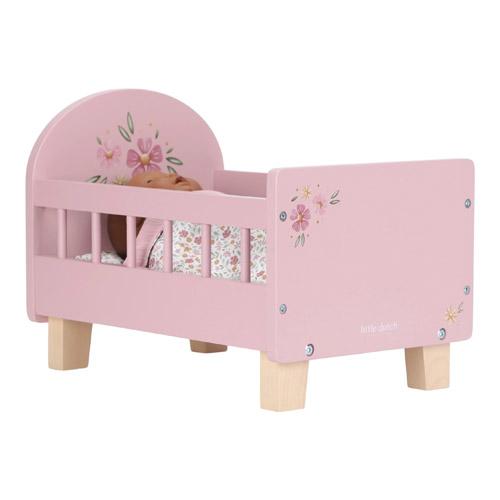 In dit houten poppenbedje van Little Dutch slaapt je pop heerlijk zacht en comfortabel.