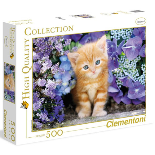 Leg de 500 stukken van deze puzzel in elkaar en ontdek de super schattige kitten tussen bloemen.