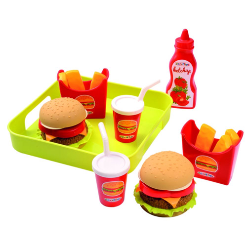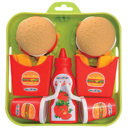 Smul van een heerlijke hamburger met frietjes dankzij de Ecoiffier fastfood dienblad set.