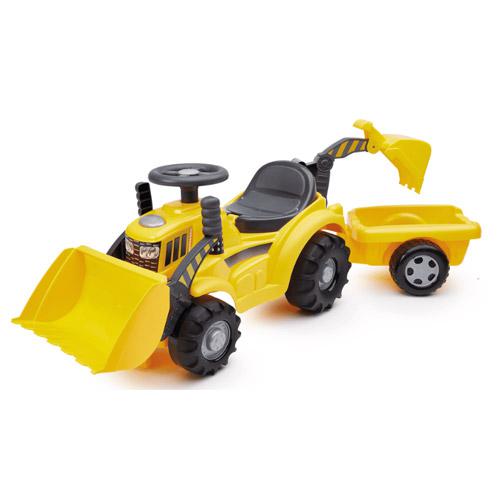Word een echte (land)bouwer met deze gele Ecoiffier tractor met aanhangwagen.
