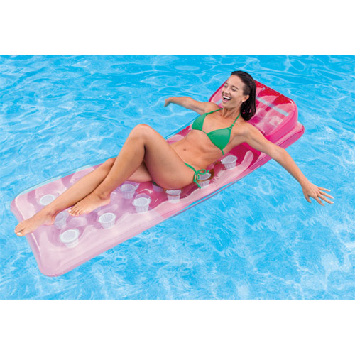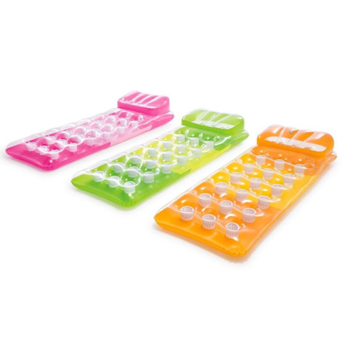 18-Pocket Fashion Lounges van Intex is een brede luchtmatras voor volwassenen met keuze uit drie kleuren, oranje, groen of paars.