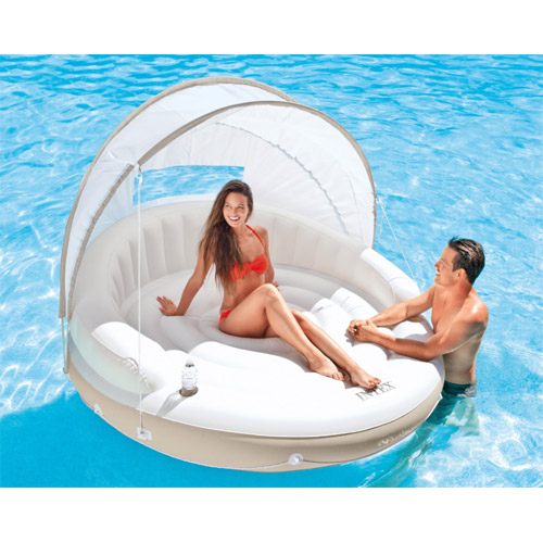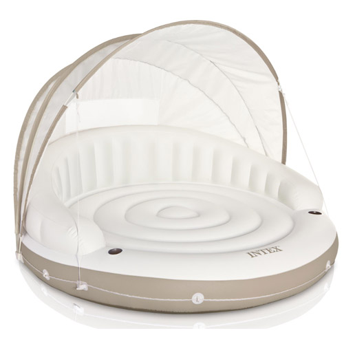 Voor nog meer relaxen met uw vrienden of partner is er de zeer ruime Canape Ijsland luchtbed voorzien van twee flessenhouders, zonneluifel en rondom een touw.Afmeting: 199 cm x 150 cm.