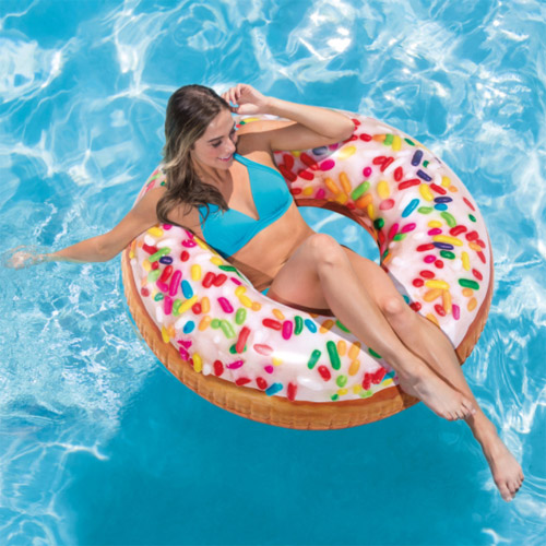 Met de snoepjes donut zwemband van het bekende merk Intex heb je een echte eyecatcher op het water te pakken.