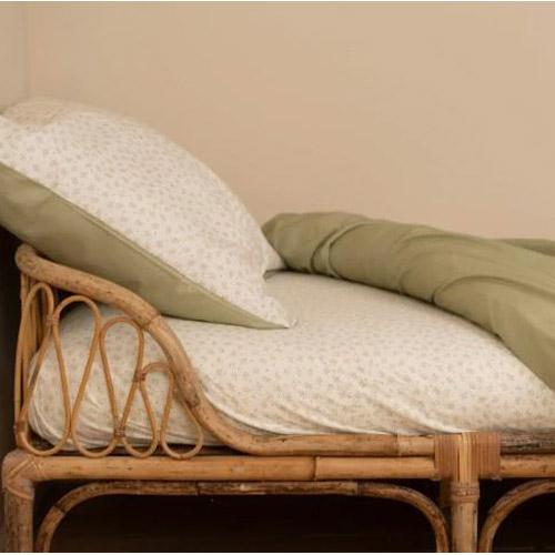 Het hoeslaken van Little Dutch in het prachtige Blueberry Leaves printje, brengt de natuur in de kinderkamer.