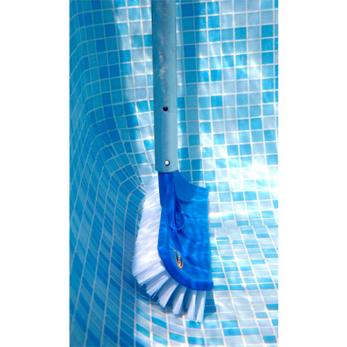 Handige bolvormige borstel om de schuine kanten in het zwembad ook mee te kunnen poetsen, deze borstel vergemakkelijkt het schoonmaken.